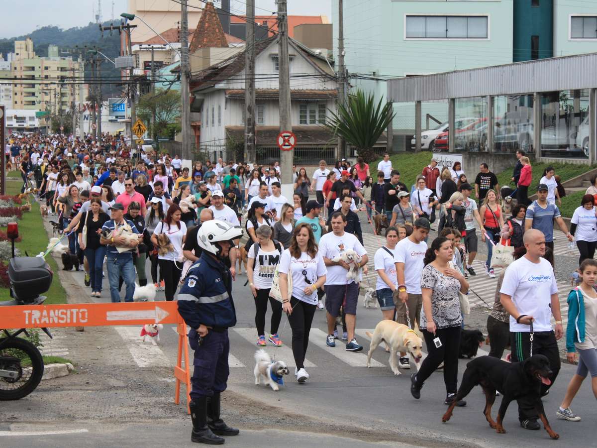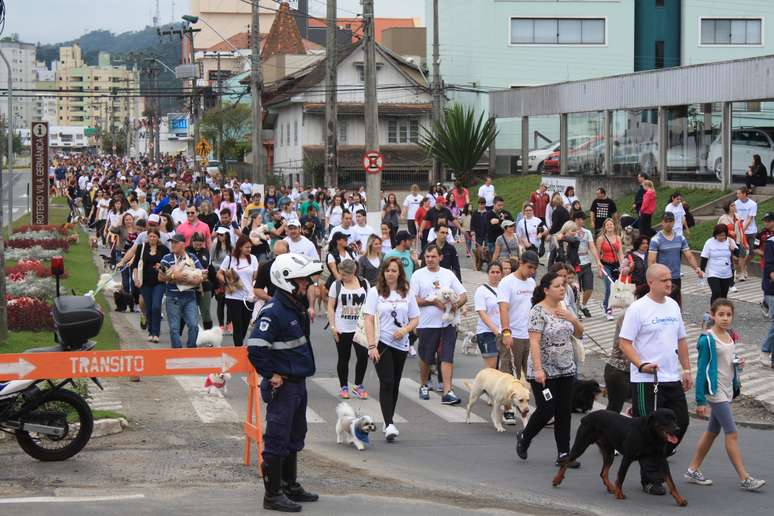 Mesmo com o céu nublado, a 16ª edição da Cãominhada levou 1.355 cães às ruas de Blumenau, em Santa Catarina, na manhã deste domingo. Segundo estimativa da Polícia Militar, cerca de 4.500 pessoas levaram seus animais de estimação para dar um passeio pela cidade.