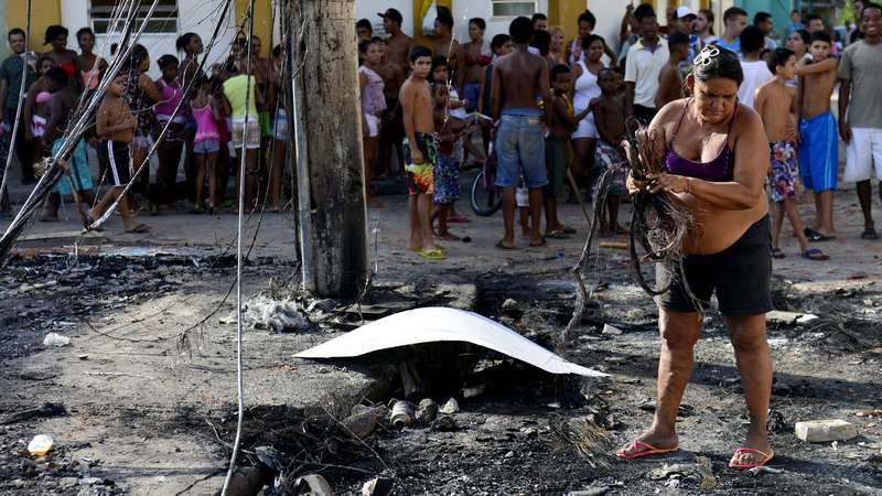 "Ninguém conseguiu dormir na noite passada. Estamos em claro até agora. A confusão começou por volta das 18h e, depois que colocaram fogo aqui, acabou a luz e ninguém conseguiu dormir", conta uma moradora da comunidade que assistia ao trabalho de limpeza. "Teve tiro, pedrada, pau. Tudo o que encontraram pela frente, eles jogaram. Quem estava na rua, se escondeu dentro de casa até acabar, e muita gente acabou ficando na casa de parentes porque não tinha mais ônibus".