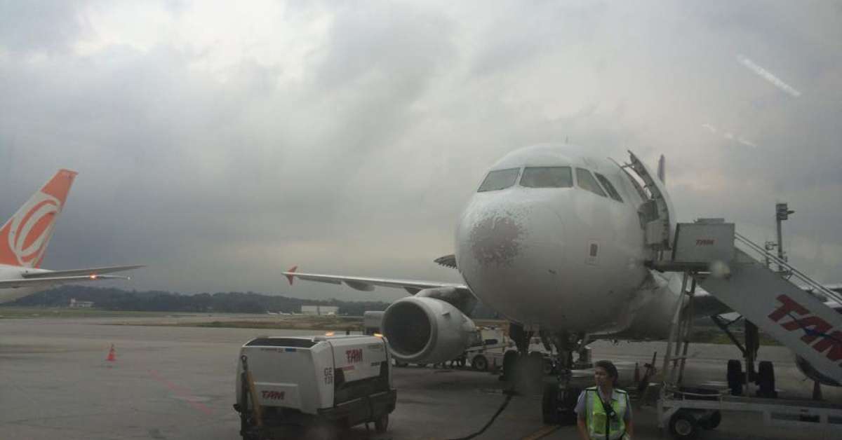 Um avião da TAM Linhas Aéreas precisou retornar ao Aeroporto de Guarulhos, na região metropolitana de São Paulo, na última terça-feira (24), após a decolagem. Ao iniciar o voo com destino à Joinville, em Santa Catarina, a aeronave foi atingida por uma chuva de granizo e, danificada, não pôde completar a viagem.