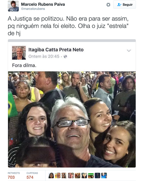 No Twitter, o escritor Marcelo Rubens Paiva disse que "a Justiça se politizou".